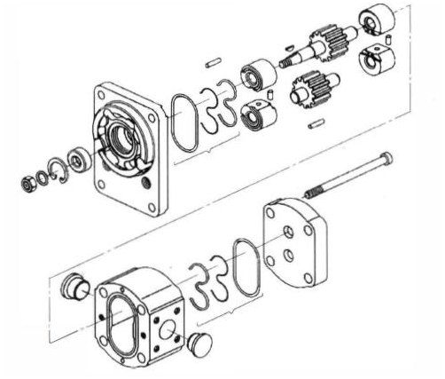 外啮合齿轮泵主要由一对轴承支悍的齿轮以及外壳(带前盖和后盖)构成。驱动轴伸出前盖,由轴封密封。轴承力被具有足够弹性的特殊轴承衬垫(薄壁轴承)吸收,从而产生表面接触而非线接触。